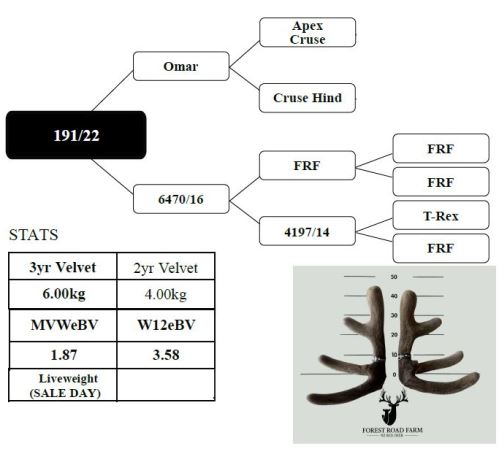 Home bred Stag 9433/19 was used for sire duties as a 2yr old. He also has a
